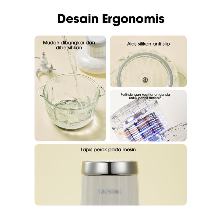 Samono 300W Food Chopper Kaca 2L Food Processor Multifungsi Penggiling Daging 2 Speed SW-C300