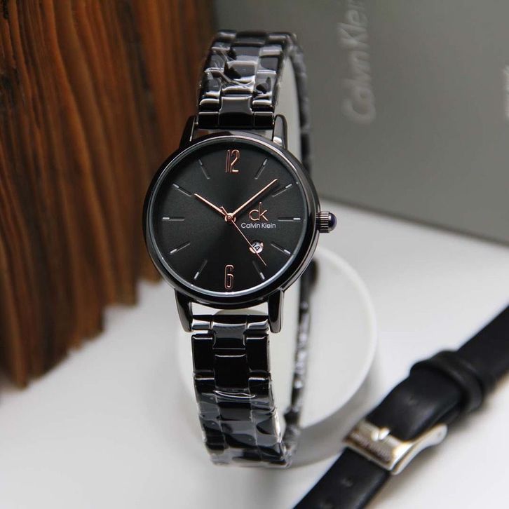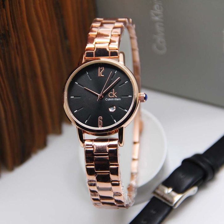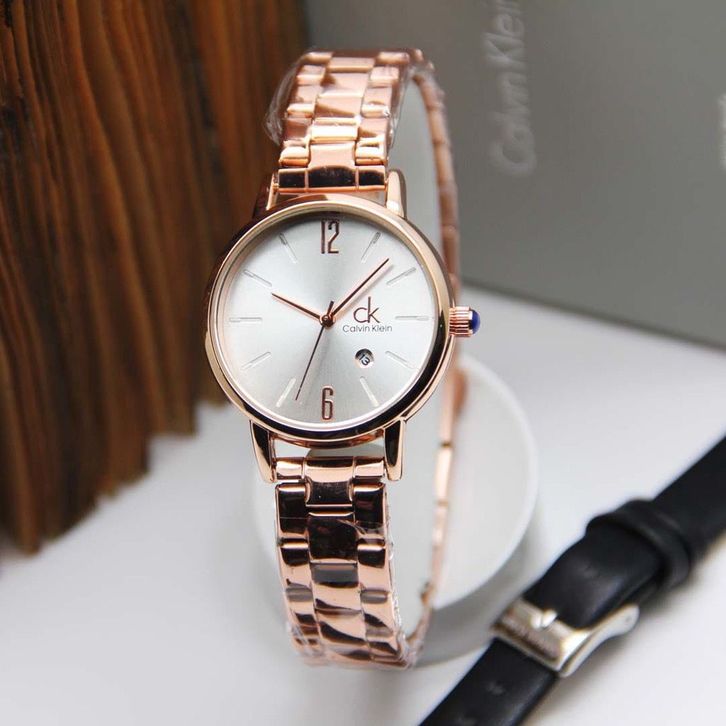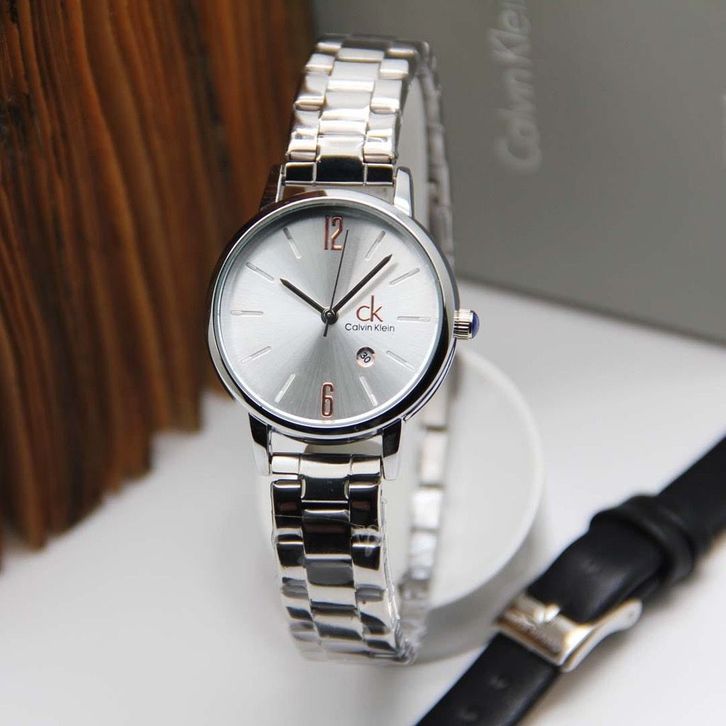 Jam Tangan Wanita Mewah Tali Rantai Tanggal Aktif Free Box Tali Kulit & Baterai Cadangan