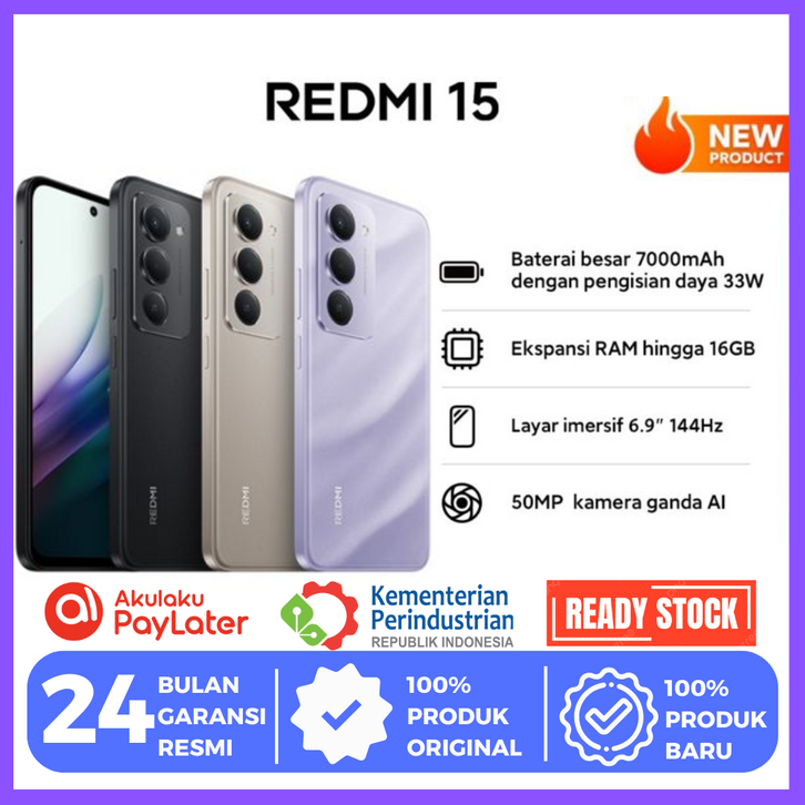 HP Xiaomi Redmi 15 8/256GB NFC - Baterai Besar 7000mAh - Fast Charging 33W - Garansi Resmi Xiaomi Indonesia