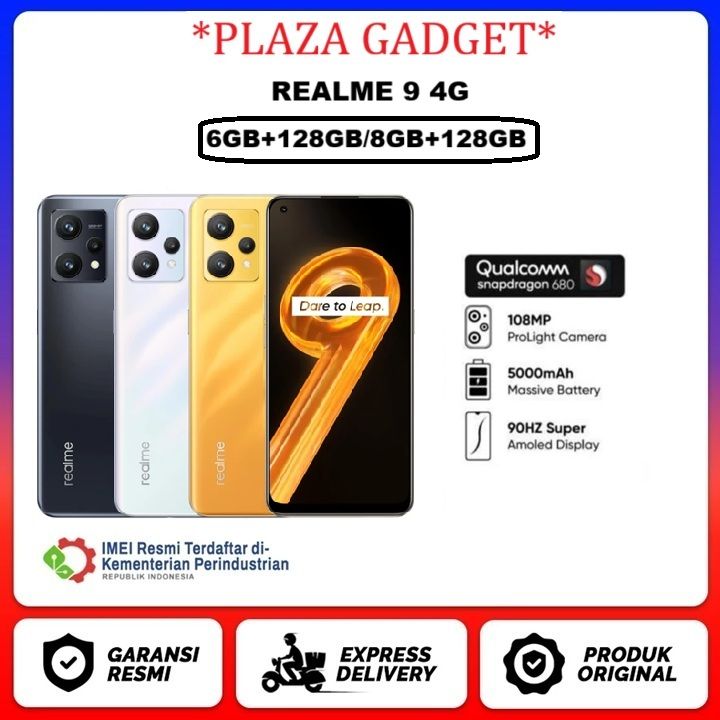 REALME 9 4G 6GB+128GB/8GB+128GB 108MP ProLight Camera, 90Hz AMOLED Display, Snapdragon 680 , 5000 battery) GARANSI RESMI