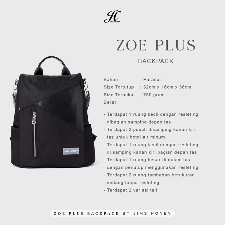 Jims Honey Zoe Backpack PLUS Tas Ransel Wanita Backpack Multifungsi