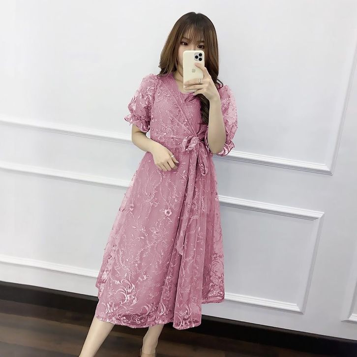 Brukat Dress MIDI DRESS NATAL LIVINA | REKOMENDASI OUTFIT BAJU PESTA KONDANGAN WANITA GAYA KOREA BROKAT TILE IMPORT