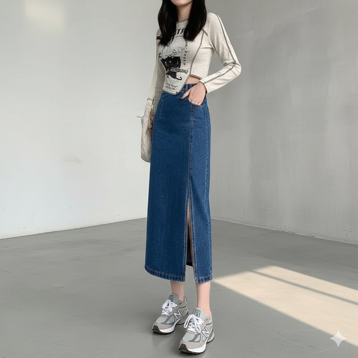 Rok Belah Samping Korean Style Rok Jeans Cewek Kekinian Rok Wanita Kekinian 7 8 2025 Skirt A-line High Waist Panjang