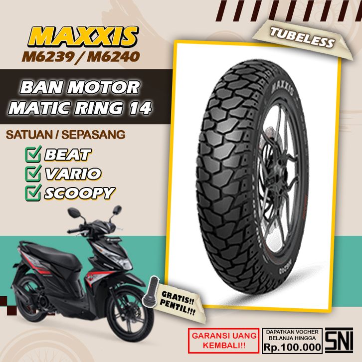 Ban Motor Matic Tubeless Maxxis 6239 6240 Ring 14 Ban Motor Beat Vario Scoopy Tubles Depan Belakang Sepasang Ring 14