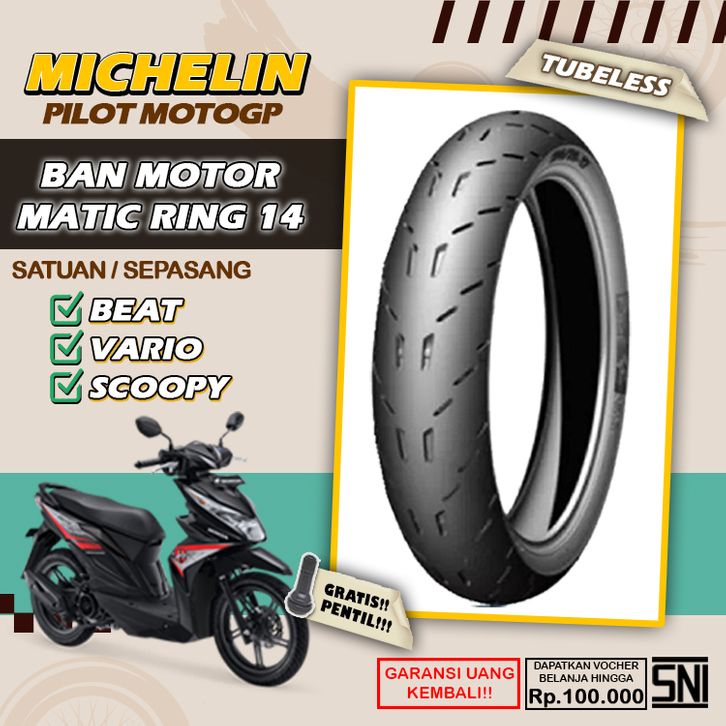 Ban Motor Matic Tubeless Michelin MotoGP Ring 14 Ban Motor Beat Vario Scoopy Tubles Depan Belakang Sepasang Ring 14