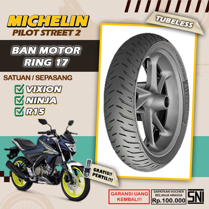 Ban Motor Tubeless Michelin Pilot Street 2 Ring 17 Ban Motor Vixion Ninja Satria Tubles Depan Belakang Sepasang Ring 17