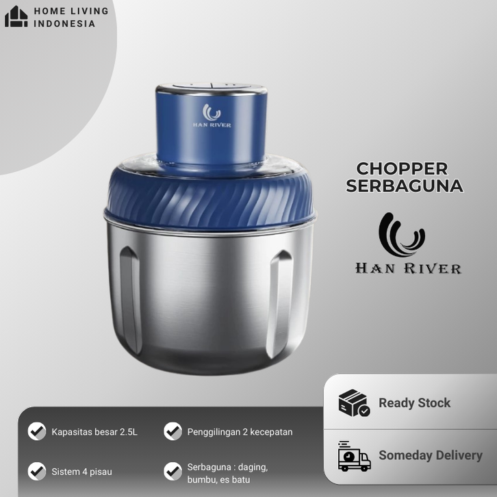 [Star] Coper Serbaguna HAN RIVER Chopper Daging Bumbu 2,5 Liter Jumbo Stainless Steel Blender Murah Berkualitas