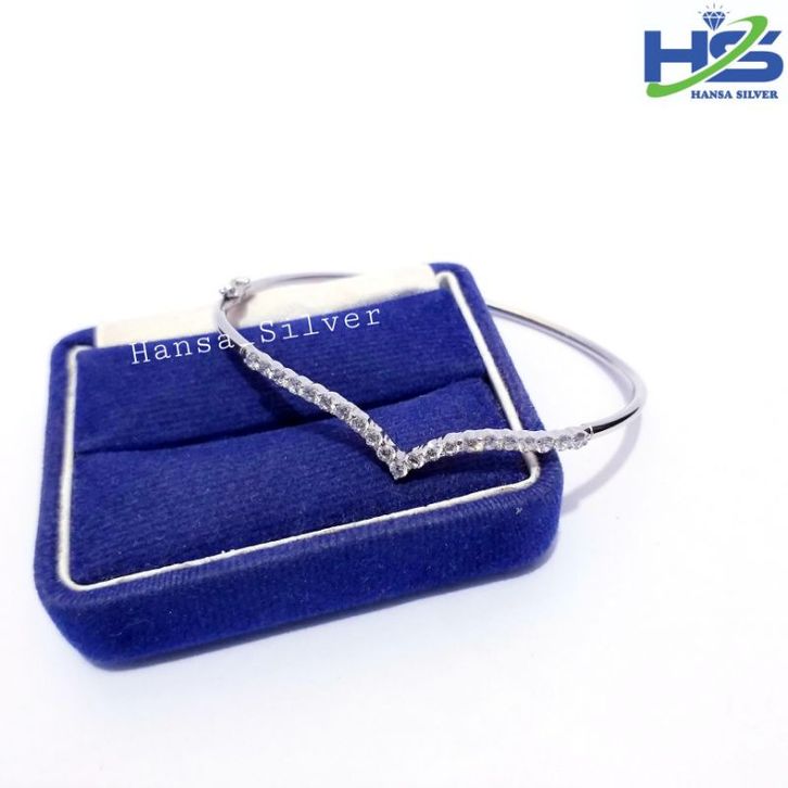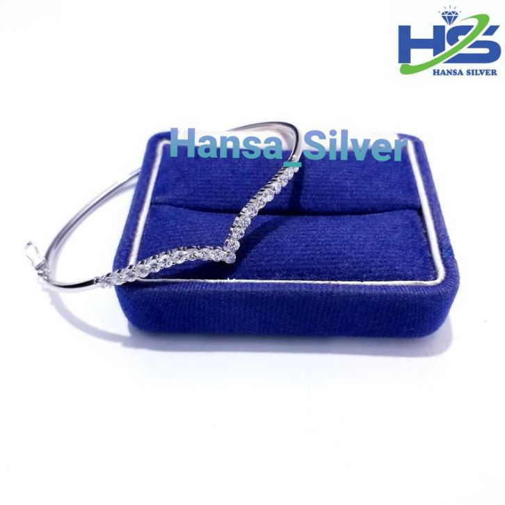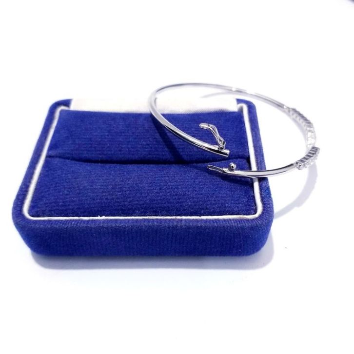Gelangg Perak Silver Asli 925 Lapis Ems Putih Model Bangle Aurel - Gelangg Perak Wanita Anti Karat