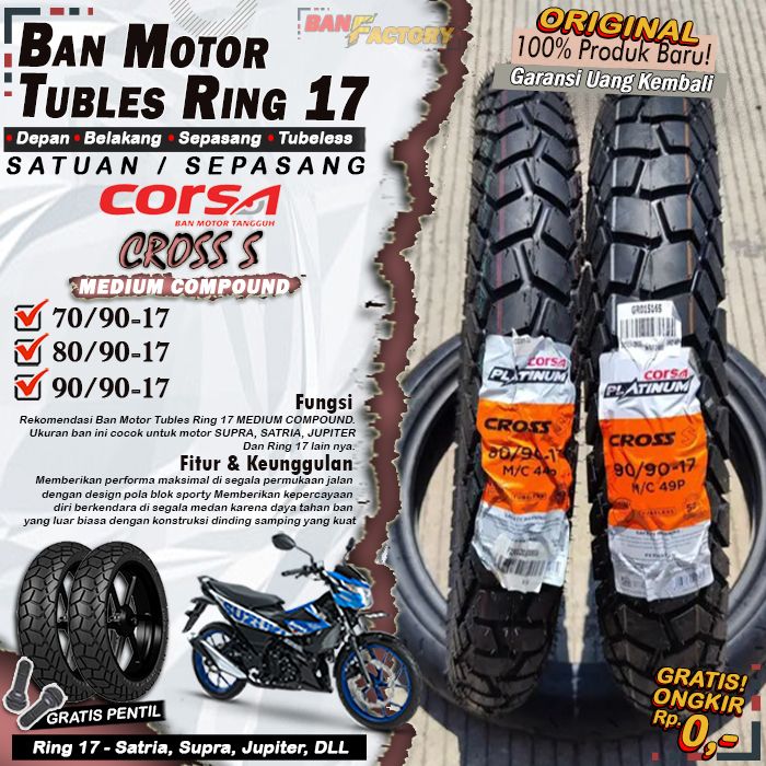 Ban Motor Tubles Ring 17 Corsa Cross S Ring 17 Ban Depan Belakang Motor Vixion Ninja Supra Satria Tubles Ring 17