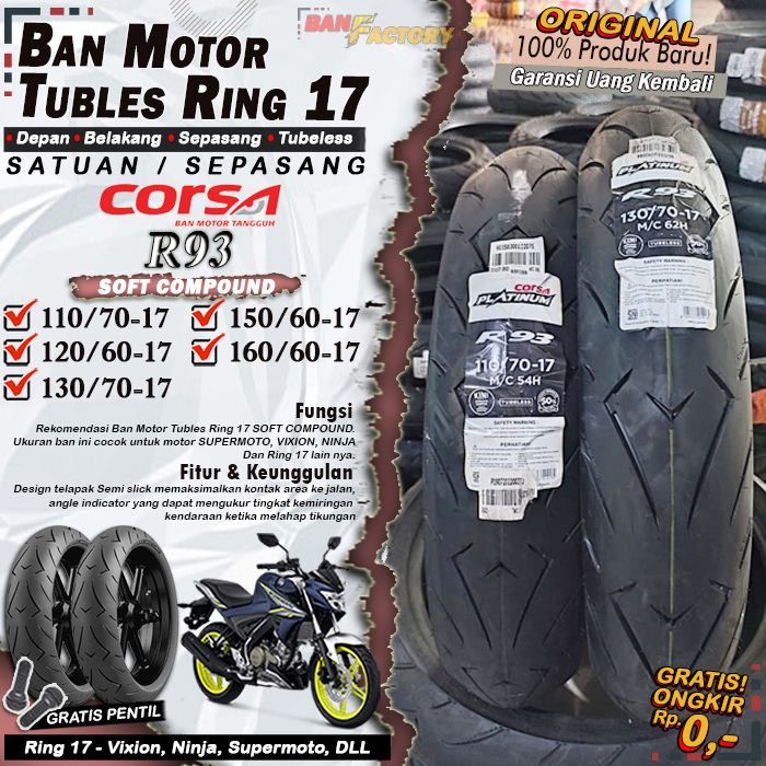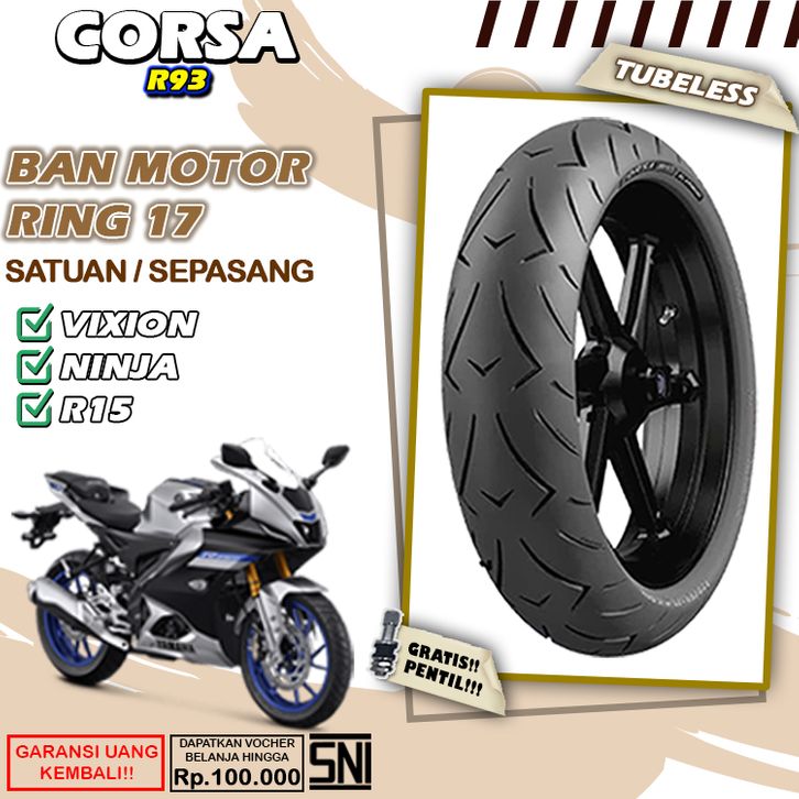 Ban Motor Tubles Ring 17 Corsa R93 Ring 17 Ban Depan Belakang Motor Vixion Ninja R15 Tubles Ring 17