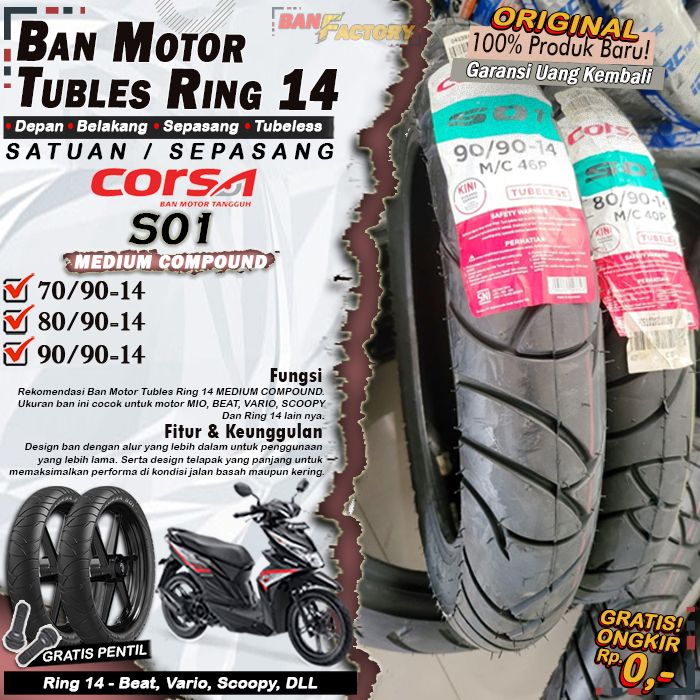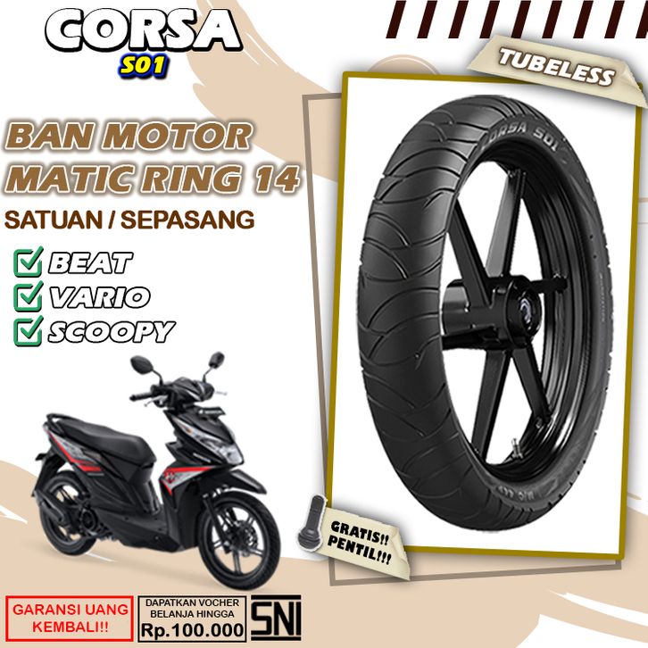 Ban Motor Matic Tubles Ring 14 Corsa S01 Ring 14 Ban Depan Belakang Motor Beat Vario Scoopy Tubles Ring 14