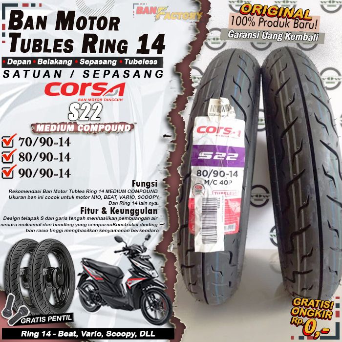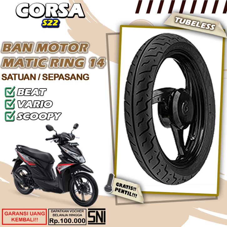 Ban Motor Matic Tubles Ring 14 Corsa S22 Ring 14 Ban Depan Belakang Motor Beat Vario Scoopy Tubles Ring 14