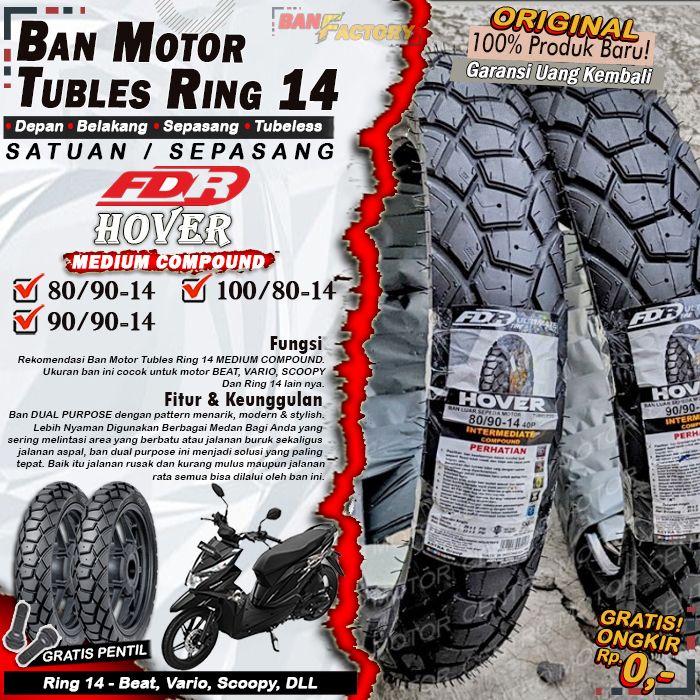 Ban Motor Matic Tubles Ring 14 FDR Hover Ring 14 Ban Depan Belakang Motor Beat Vario Scoopy Tubles Ring 14