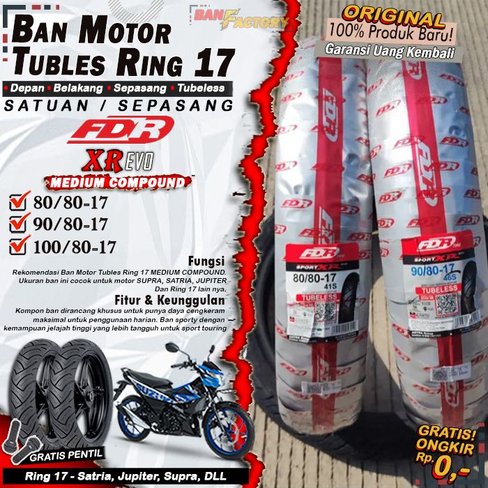 Ban Motor Tubles Ring 17 FDR XR EVO Ring 17 Ban Depan Belakang Motor Vixion Ninja Supra Satria Tubles Ring 17