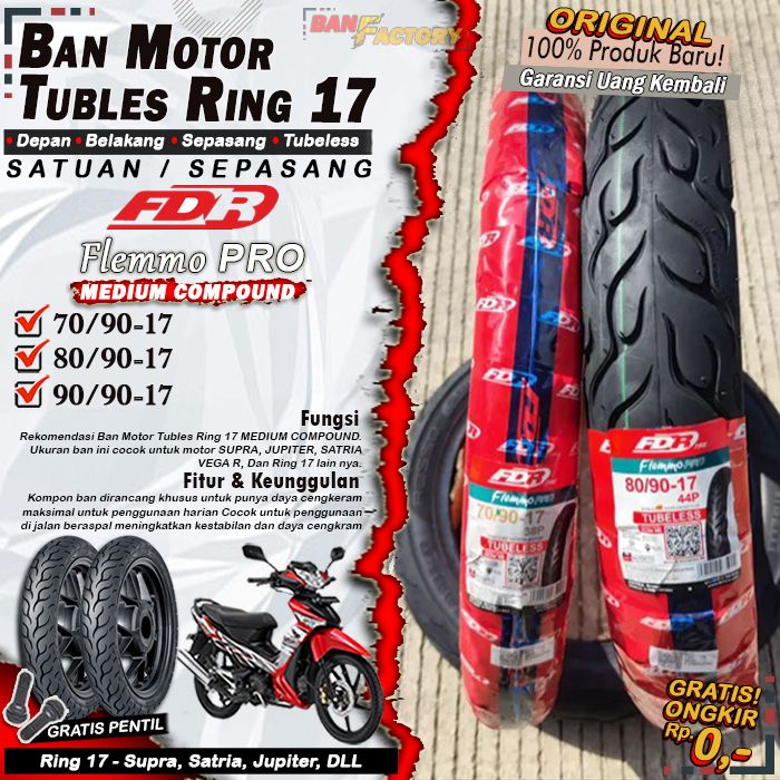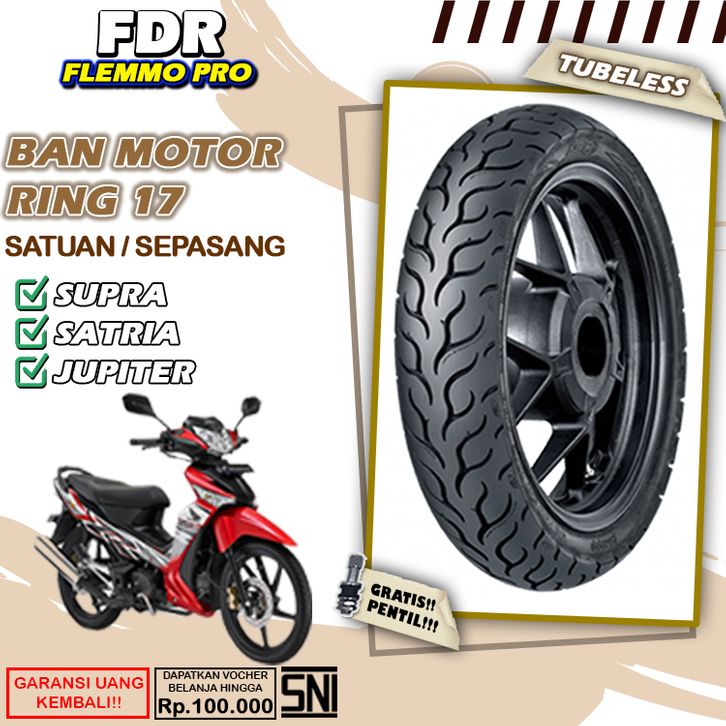 Ban Motor Tubeless FDR Flemmo Pro Ring 17 Ban Motor Vixion Ninja Supra Satria Tubles Depan Belakang Sepasang Ring 17