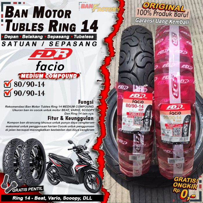 Ban Motor Matic Tubles Ring 14 FDR Facio Ring 14 Ban Depan Belakang Motor Beat Vario Scoopy Tubles Ring 14