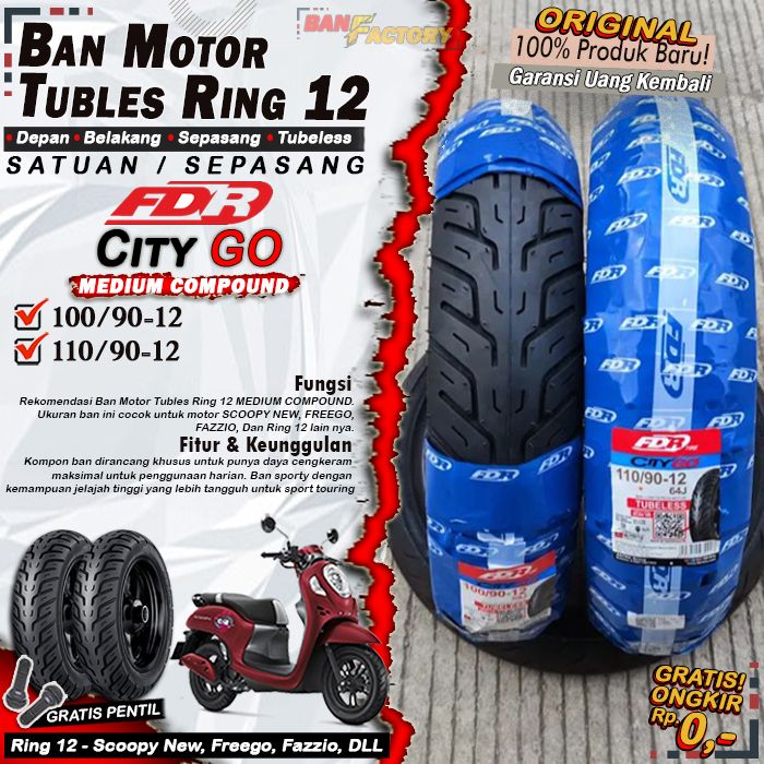 Ban Motor Matic Tubles Ring 12 FDR City Go Ring 12 Ban Depan Belakang Motor Scoopy FreeGo Fazzio Tubles Ring 12