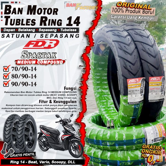 Ban Motor Matic Tubles Ring 14 FDR Spartax Ring 14 Ban Depan Belakang Motor Beat Vario Scoopy Tubles Ring 14
