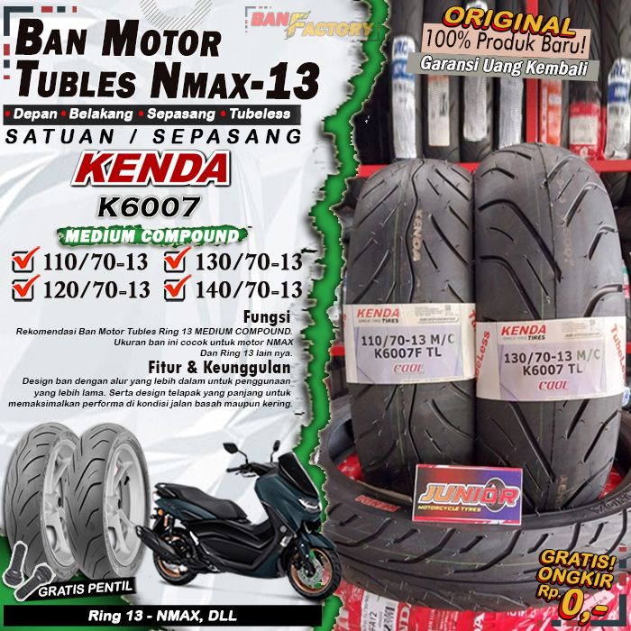 Ban Motor Tubeless Kenda K6007 Ring 13 Ban Motor Nmax Tubles Depan Belakang Sepasang Ring 13