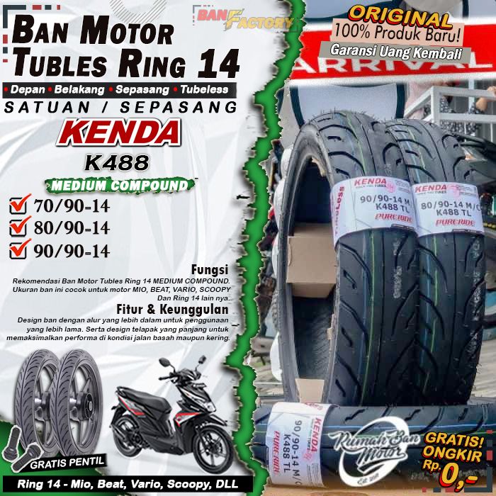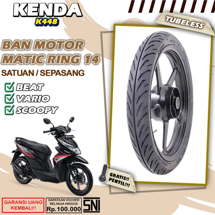Ban Motor Matic Tubeless Kenda K448 Ring 14 Ban Motor Beat Vario Scoopy Tubles Depan Belakang Sepasang Ring 14