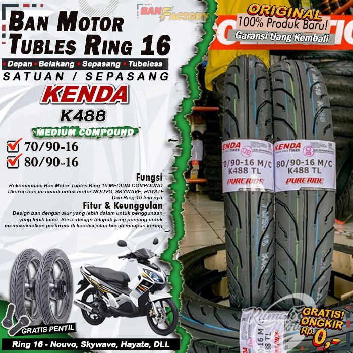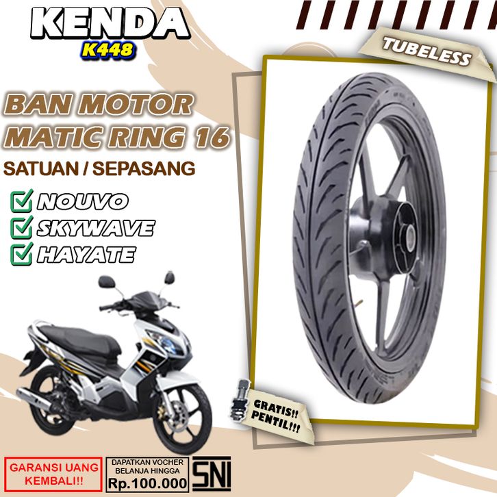 Ban Motor Matic Tubeless Kenda K448 Ring 16 Ban Motor Nouvo Skywave Hayate Tubles Depan Belakang Sepasang Ring 16
