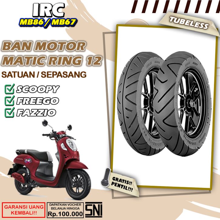 Ban Motor Matic Tubeless IRC MB86 MB67 Ring 12 Ban Motor Scoopy Freego Fazzio Tubles Depan Belakang Sepasang Ring 12