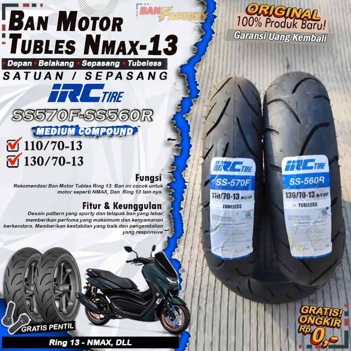 Ban Motor Matic Tubeless IRC SS570F SS560R Ring 13 Ban Motor Nmax PCX Tubles Depan Belakang Sepasang Ring 13