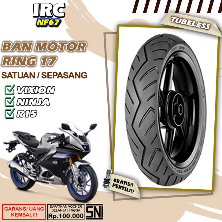 Ban Motor Tubeless IRC NF67 Ring 17 Ban Motor Ninja Vixion R15 Tubles Depan Belakang Sepasang Ring 17