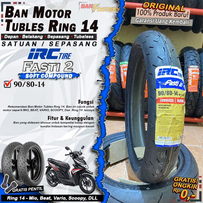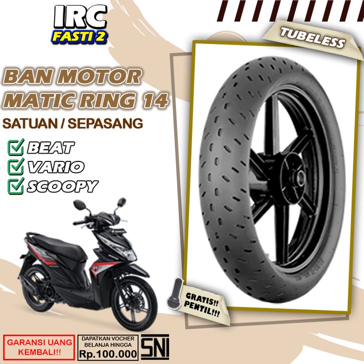 Ban Motor Matic Tubeless IRC Fasti 2 Ring 14 Ban Motor Beat Vario Scoopy Tubles Depan Belakang Sepasang Ring 14