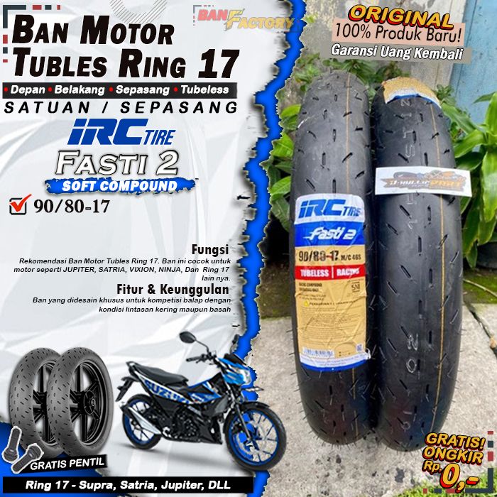 Ban Motor Tubeless IRC Fasti 2 Ring 17 Ban Motor Ninja Vixion Satria Supra Tubles Depan Belakang Sepasang Ring 17