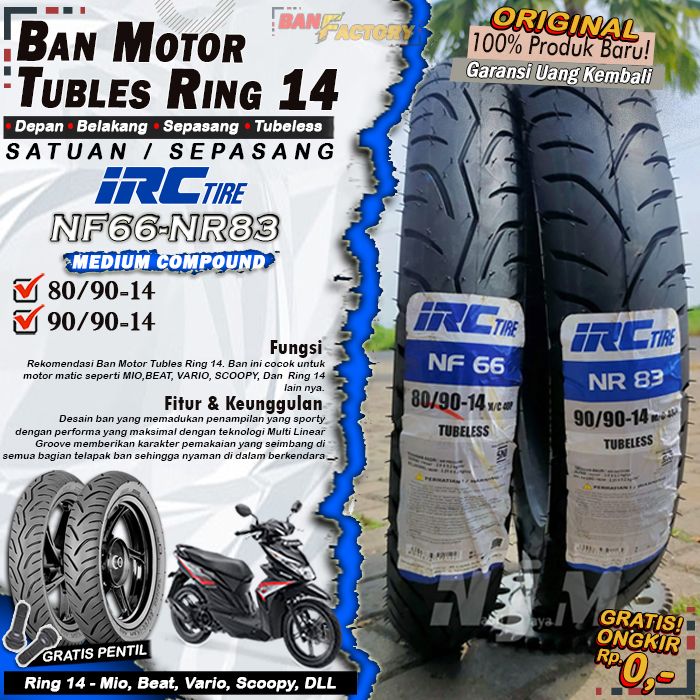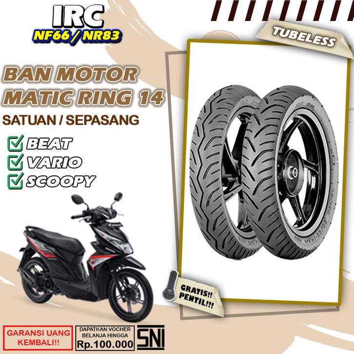 Ban Motor Matic Tubeless IRC NF66 NR83 Ring 14 Ban Motor Beat Vario Scoopy Tubles Depan Belakang Sepasang Ring 14