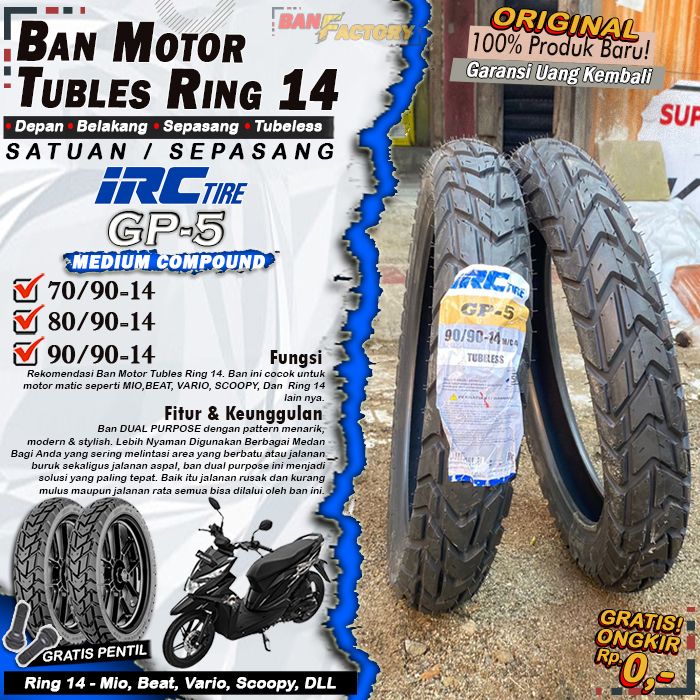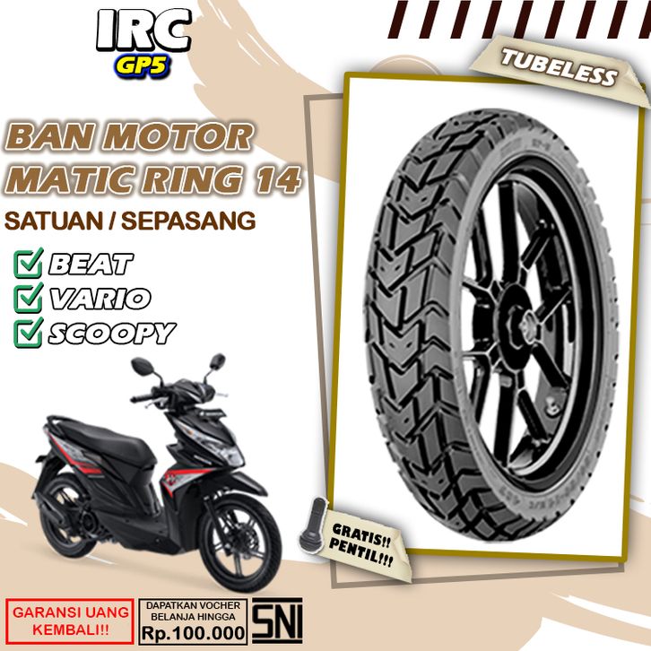 Ban Motor Matic Tubeless IRC GP5 Ring 14 Ban Motor Beat Vario Scoopy Tubles Depan Belakang Sepasang Ring 14
