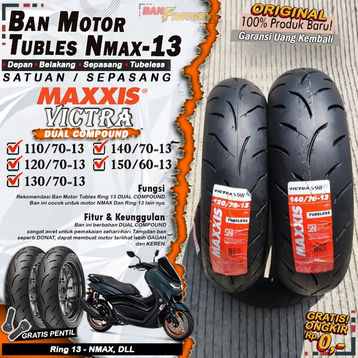 Ban Motor Matic Tubeless Maxxis Victra Ring 13 Ban Motor Nmax PCX Tubles Depan Belakang Sepasang Ring 13
