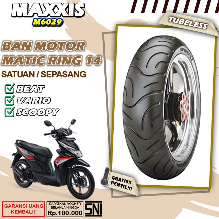 Ban Motor Matic Tubeless Maxxis 6029 Ring 14 Ban Motor Beat Vario Scoopy Tubles Depan Belakang Sepasang Ring 14