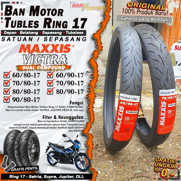 Ban Motor Tubeless Maxxis Victra Ring 17 Ban Motor Vixion Ninja Satria Supra Tubles Depan Belakang Sepasang Ring 17