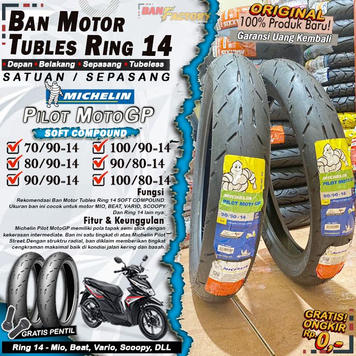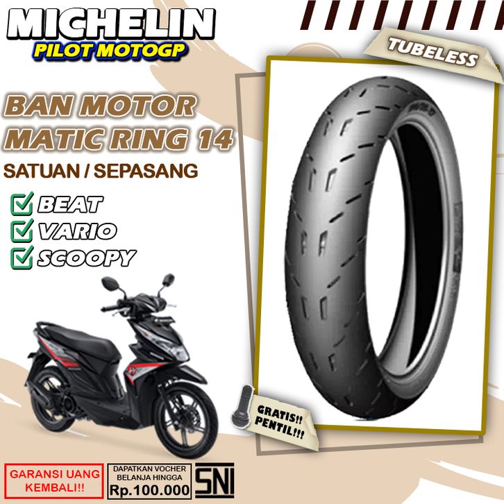 Ban Motor Matic Tubeless Michelin MotoGP Ring 14 Ban Motor Beat Vario Scoopy Tubles Depan Belakang Sepasang Ring 14