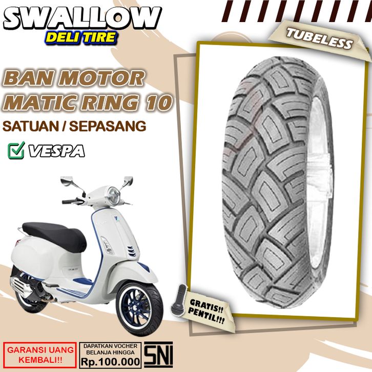Ban Motor Matic Tubeless Swallow Deli Tire Ring 10 Ban Motor Vespa Tubles Depan Belakang Sepasang Ring 11