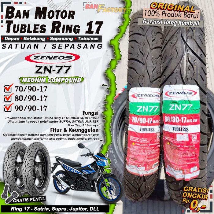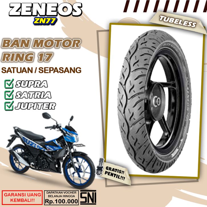 Ban Motor Tubeless Zeneos Zn77 Ring 17 Ban Motor Vixion Ninja R15 Satria Tubles Depan Belakang Sepasang Ring 17