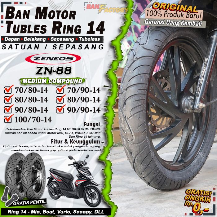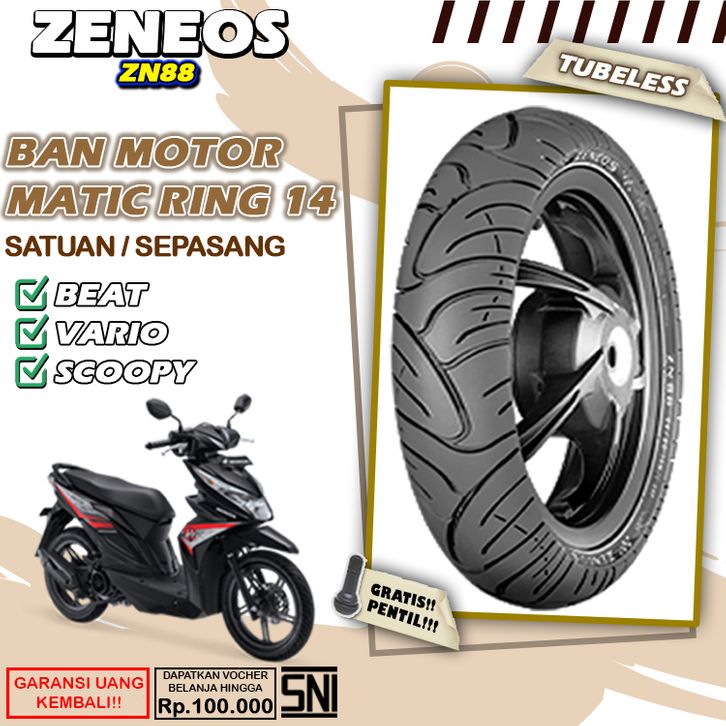 Ban Motor Matic Tubeless Zeneos ZN88 Ring 14 Ban Motor Beat Vario Scoopy Tubles Depan Belakang Sepasang Ring 14
