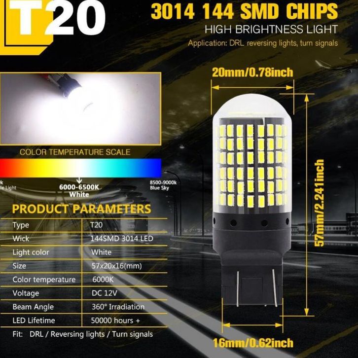 LAMPU SEIN MOBIL LED SUPER TERANG SOCKET T20 144 MATA NINE LUMINOS NL1 NL2 CANBUS DAJJAL VARIASI