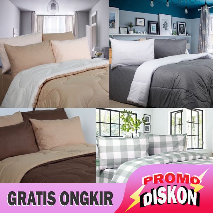 PROMO/ TWO TONE BEDCOVER KOMBINASI SPREI SET BALANJA KATUN JEPANG ADEM BAHAN HALUS ABU TUA MUDA MINIMALIS