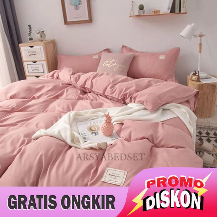 PROMO/ ARSYABEDSET BEDCOVER SET POLOS/BEDCOVER+SPREI MOTIF POLOS SATU WARNA