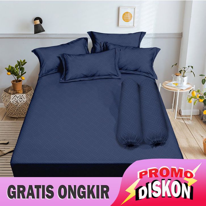 PROMO/ ALOHA - SPREI QUEEN 160X200X20 EMBOSS BANTAL 2- NAVY