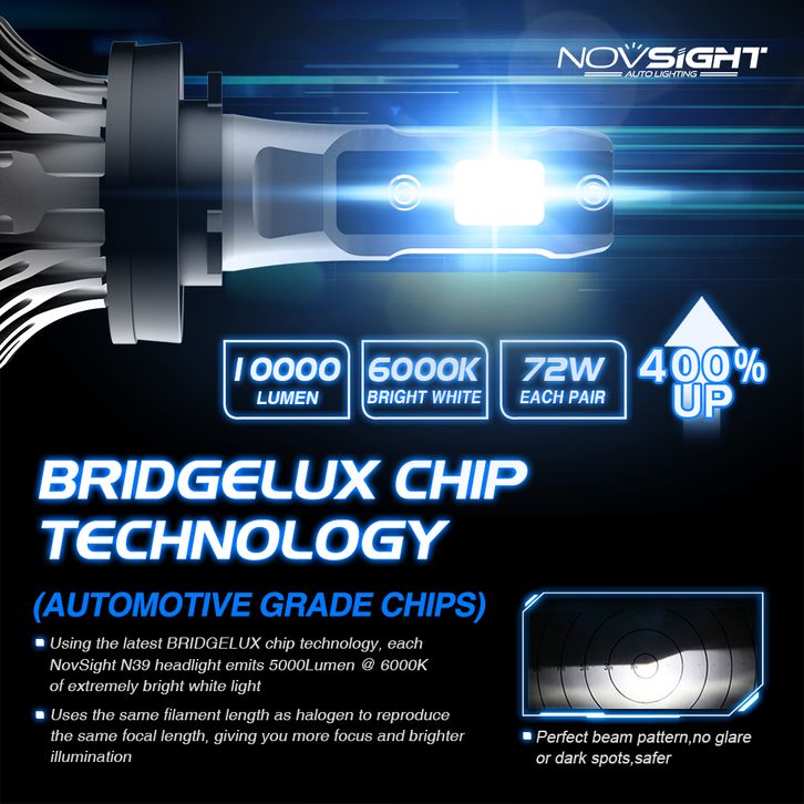 Novsight Led Lampu Depan Mobil N39 H11 72W 10000Lm Lampu Kabut 2 Pieces Headlight Fog Light