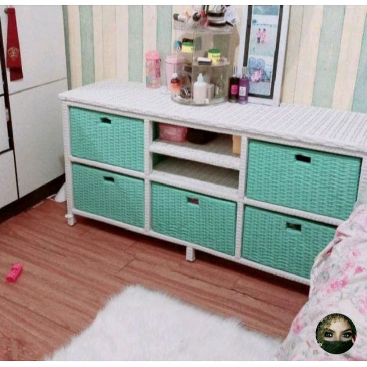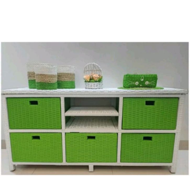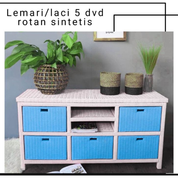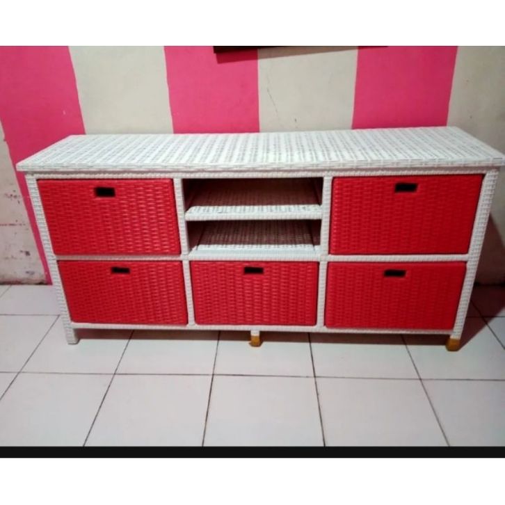 Meja Tv Rak TV Rotan Lemari Rotan Sintetis Dvd Laci 5 Meja Tv Rak Buku Lemari Plastik