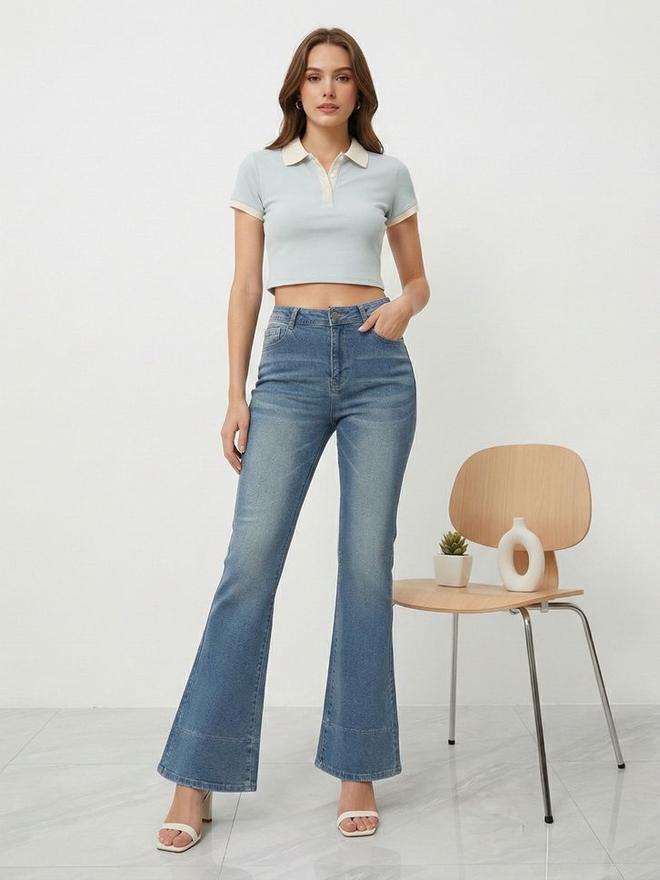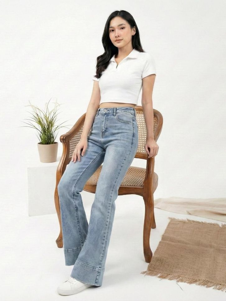 Cutbray Jeans Wanita Kekinian Celana Jeans Wanita Cutbray Flared High Waist Kekinian / Jhoin Jeans