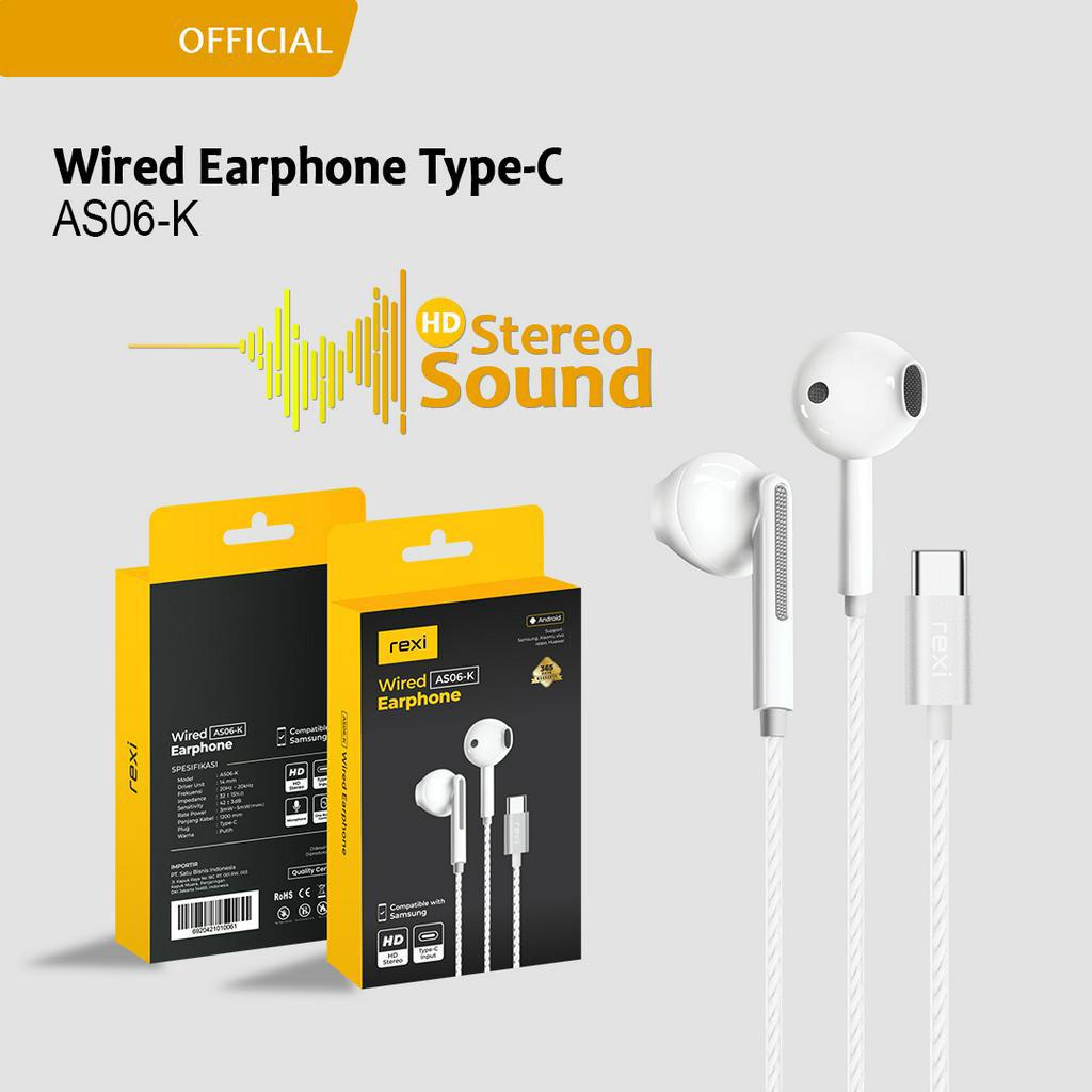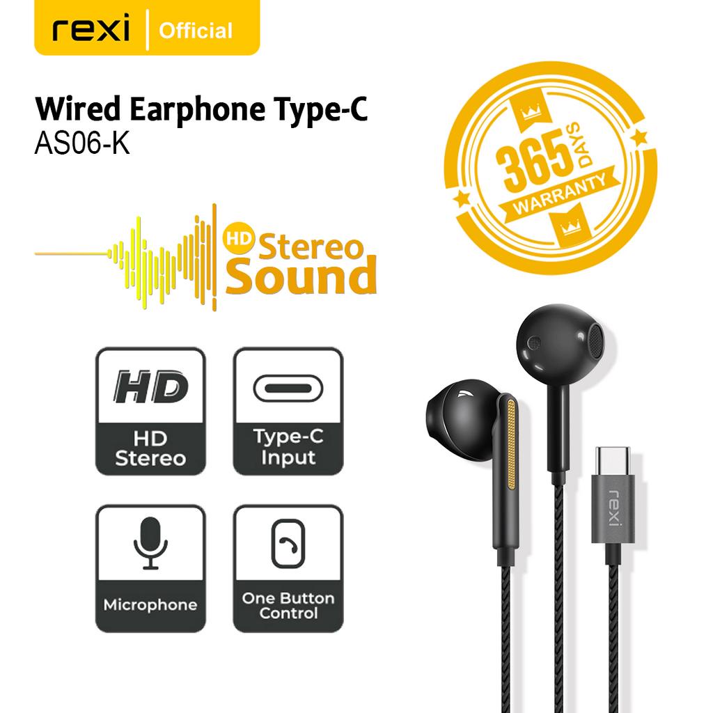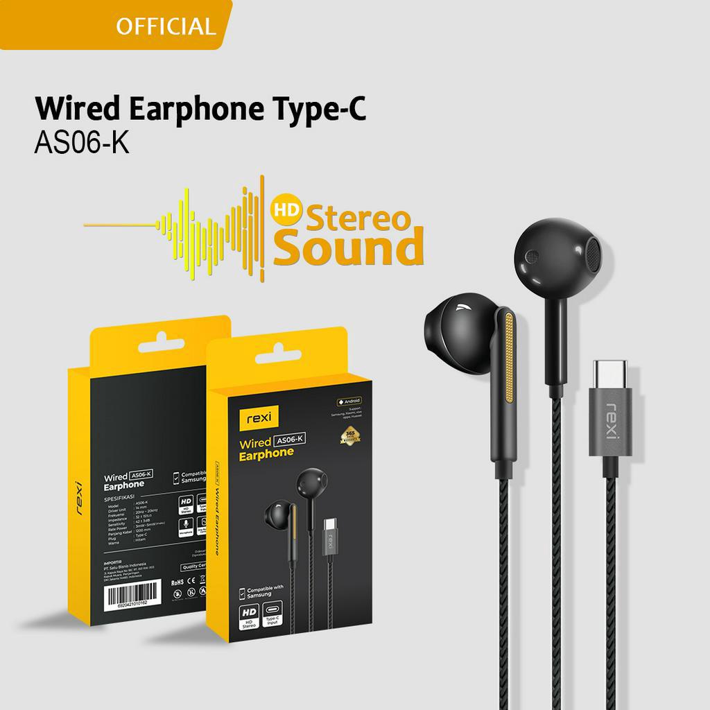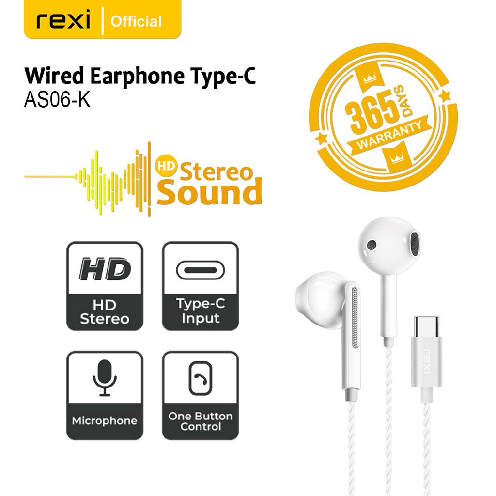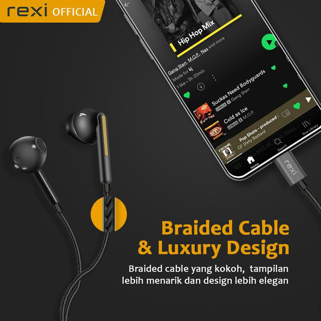REXI ONE HANDSFREE HEADSET SEMI IN-EAR BRAIDED TYPE-C CONNECTOR 3D HANDSFRE HD STEREO AS06-K