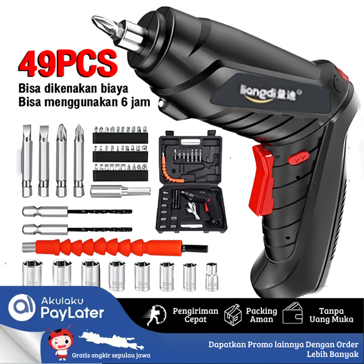 Mesin Bor Baterai Mini Screwdriver 4.2 V 49pcs 1 Set Lengkap Multifungsi Listrik Impact APR JLD Makita Tekiro Cas ori