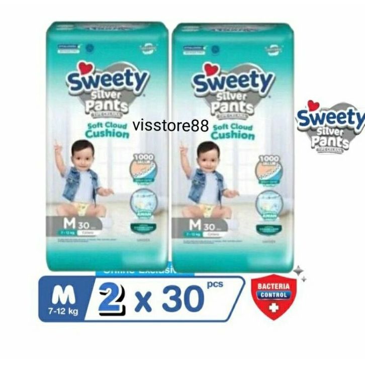 Promo Pampers Baby happy/Mamy poko/Sweety Silver Pants [2 x M30pcs] Soft Could Cushion popok bayi tipe celana sweety