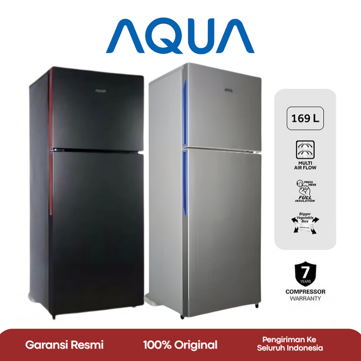 KULKAS AQUA 2 PINTU AQR D 251 169 LITER LEMARI ES LOW WATT FREEZER DUA DOOR REFRIGERATOR KAPASITAS BESAR TANPA BUNGA ES